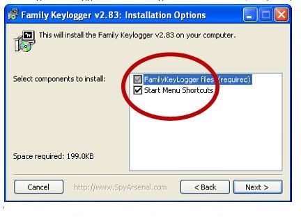 Buang centang pada Start Menu Shorcuts, jika centang tersebut tidak dibuang maka keylogger akan muncul di Start Program. Setelah itu kemudian klik Next, sehingga muncul dialog seperti Gambar 4, di bawah :