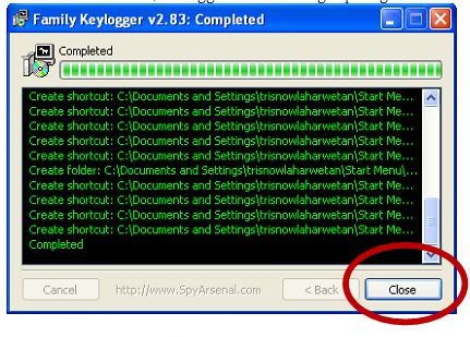 Setelah itu klik Close, dan shortcut keylogger akan muncul di systray (pojok kanan bawah) seperti Gambar 6: