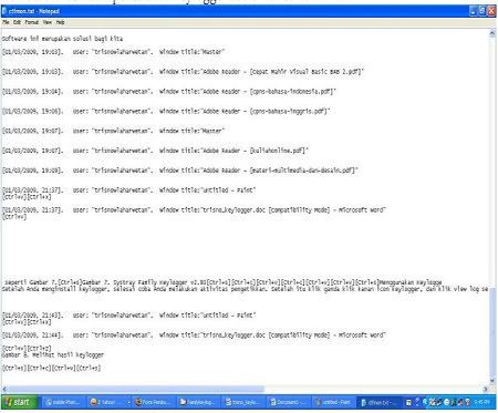 Kemudian hasil dari pencatatan keylogger adalah di bawah ini :